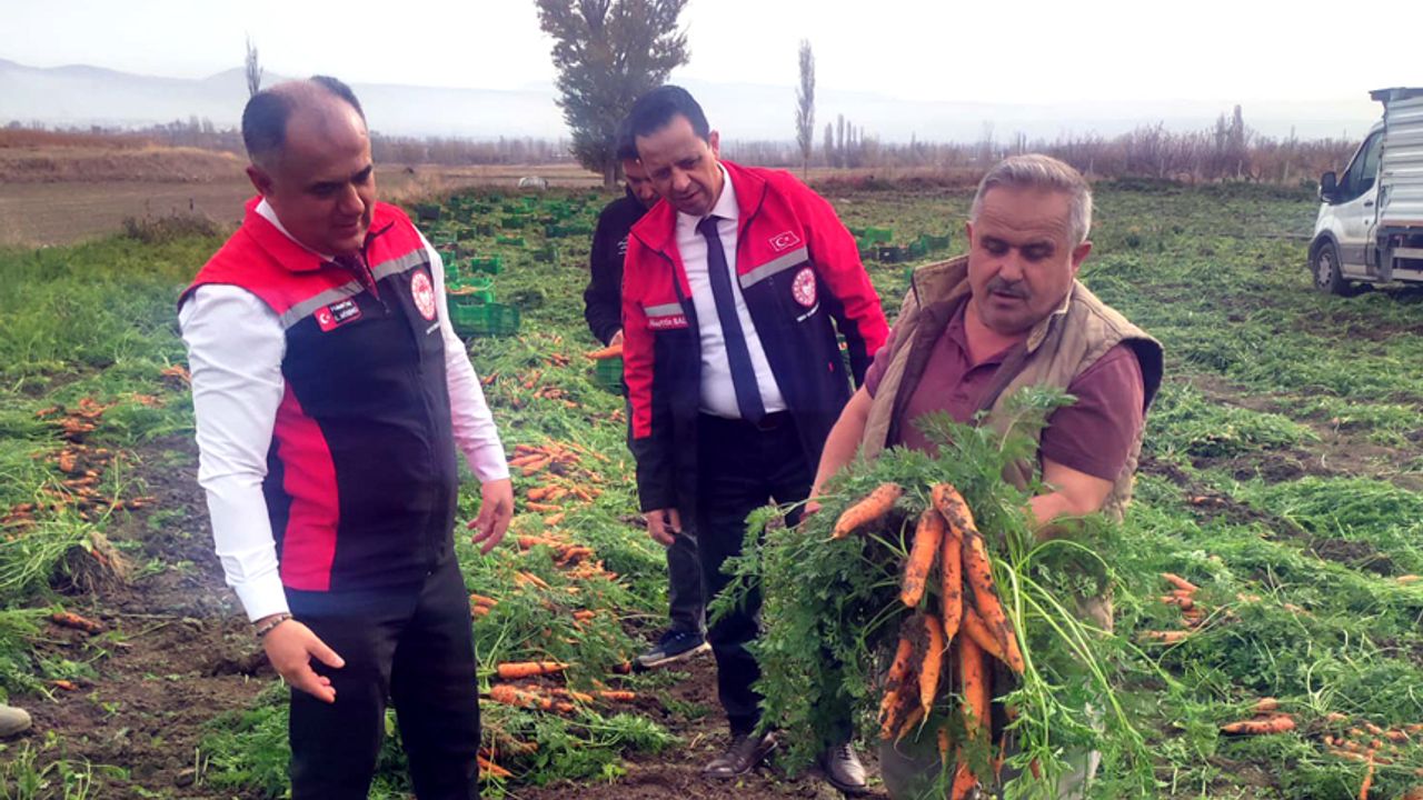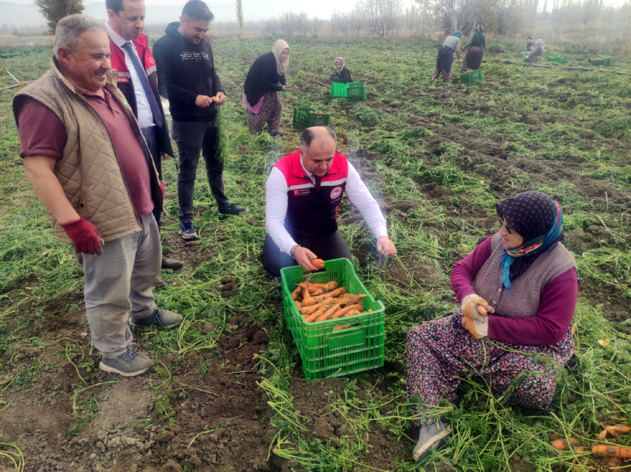 Tarım ve Orman İl Müdürü Hasan Taş ve Gıda, Yem ve Şube Müdürü Alaattin Bal, ilimizin örnek ve önder üreticilerinden Mehmet Sayan’a ait havuç tarlasında devam eden hasat çalışmalarını yerinde inceledi.