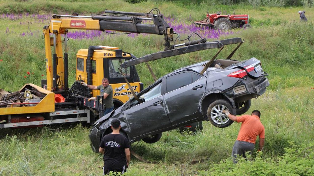 Savrulan otomobil, takla atıp şarampole uçtu. İçerde sıkışan sürücü çevreden yetişenlerin ve itfaiye ekibinin yardımıyla çıkartıldı. Ambulansla hastaneye kaldırılarak yaralı tedavi altına alındı.