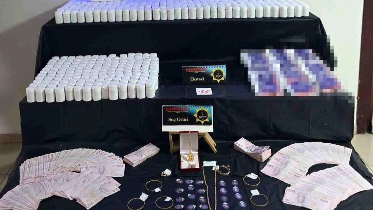 Çalışmalar kapsamında tespit yapılan şüpheli şahısların üzerlerinde, araçlarında ve ikametlerinde yapılan adli aramalarda; 30 bin 248 tablet sentetik ecza hapı, 84 adet ekstazi, 172 bin lira suçtan elde edildiği değerlendirilen para, 120.65 gram suçtan elde edildiği değerlendirilen altın ve ziynet eşyası ele geçirildi.