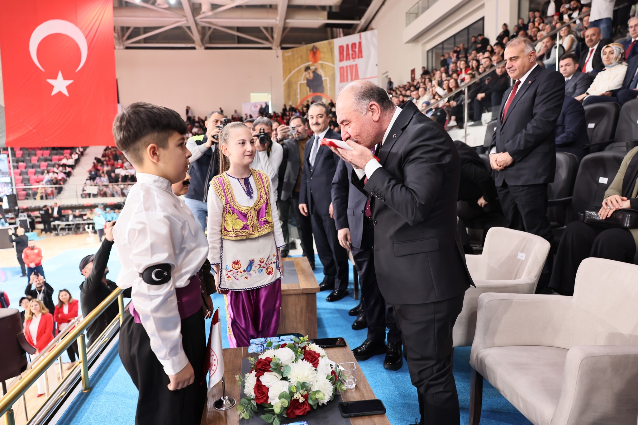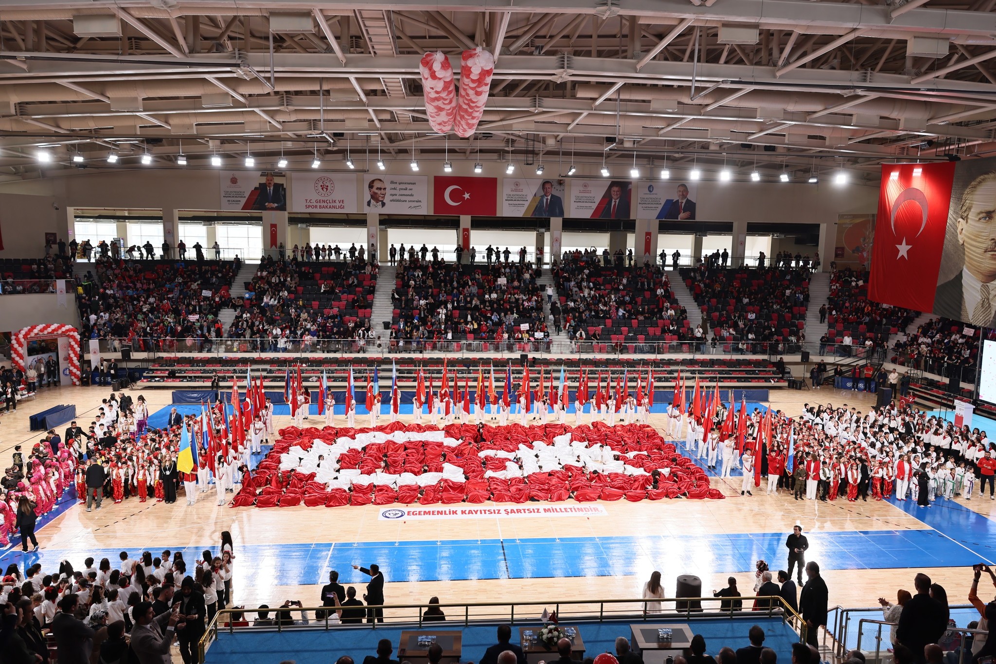 Kutlama programı daha sonra Yeni Spor Salonu’nda devam etti.