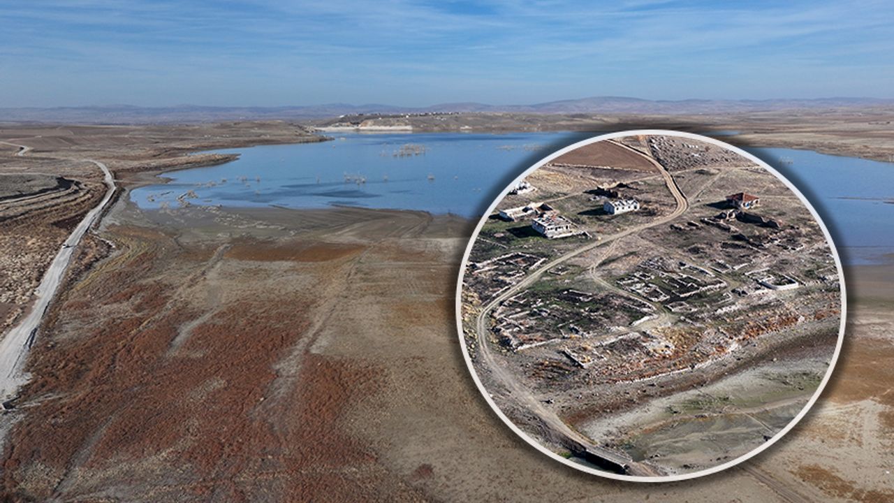 Baraj suları çekilince eski köy ve kara yolu ortaya çıktı