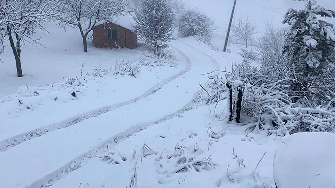 Sabah saatlerinden itibaren etkili olan kar yağışı nedeniyle Oğuzlar ilçesindeki ceviz bahçeleri karla kaplandı.