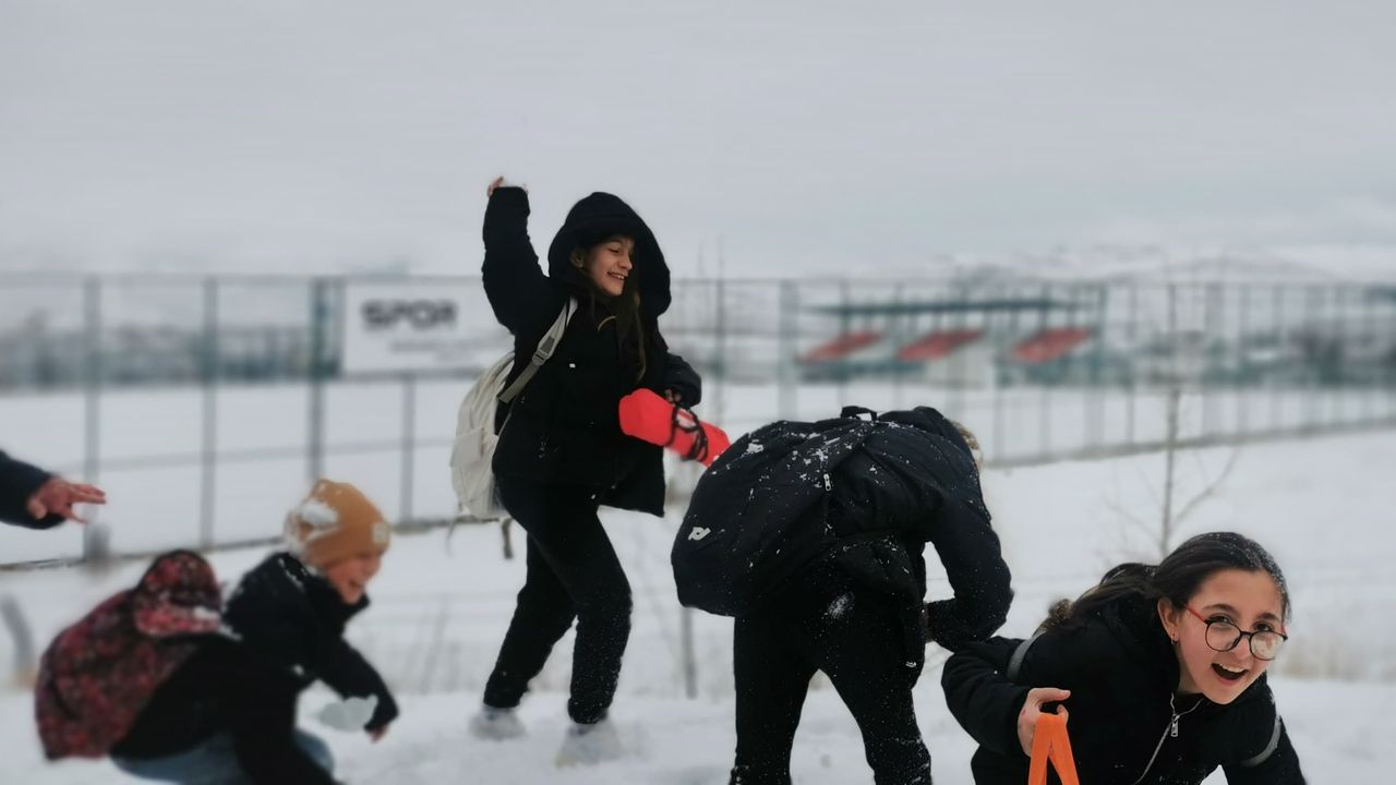 İlçe merkezinde bulunan Yatılı Bölge Okulu (YİBO) bahçesine gelen çocuklar soğuk havaya rağmen kartopu oynayarak karın keyfini çıkardı.