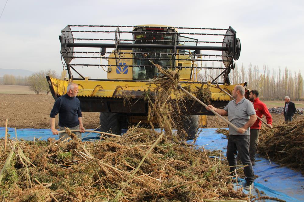 Alternatif ürün olarak bu sene yaklaşık 150 dönüm alanda ekim yapan üretici Bektaş Keskin, "Bazı ekonomik sıkıntılar nedeniyle alternatif ürün arayışına girdik ve İstanbul’da bir firmanın teklifi üzerine kenevir ekmeye karar verdik. Bu yıl üretim yaptık ve biraz araştırma sonucunda, vatandaşların aldığı verimleri, satış rakamlarını ve kazanç durumlarını inceledik. Ancak karşılaştığımız bazı sorunlar da oldu. Özellikle hasat döneminde sıkıntılar yaşandığını gözlemledik. Sadece Çorum veya Türkiye’de değil, dünya genelinde de hasat için gerekli makineleşmenin yeterli seviyeye ulaşmadığını gördük. Samsunlu bir arkadaşın geliştirdiği bir makine vardı. Ona ilave aparatlar ekleyerek kenevirin tuğlarını römorka aktarabilecek bir ataşman yaptırdık. Fakat makinenin kuru bölgelerde tohum zayiatına neden olduğunu fark ettik. Kuru alanları işçiyle, yaş alanları ise makineyle hasat ediyoruz. Elde ettiğimiz verim genel ortalama olarak dönüm başı 130-150 kilogram civarında. Biz üretimi tohum amacıyla yapıyoruz. Firma bizden tohum talep etti ve biz tohum üretiyoruz" diye konuştu.