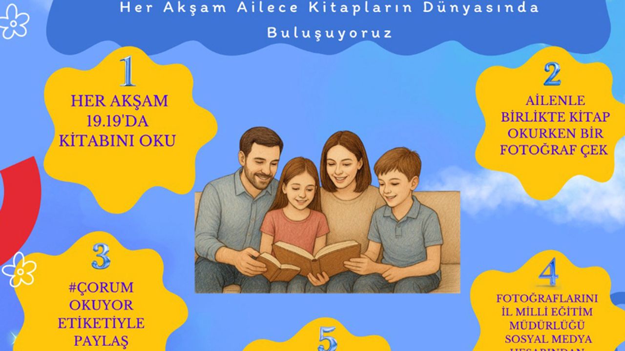 Proje kapsamında her akşam saat 19.19’da, Çorum’daki öğrenciler anne ve babalarıyla birlikte aynı masa etrafında kitaplarını açıyor; ekranlardan uzak, kelimelerin sıcaklığında buluşuyor.