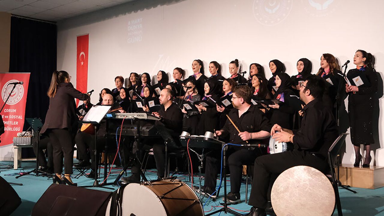 Çorum'da, Aile ve Sosyal Hizmetler İl Müdürlüğünde görevli kadın çalışanlardan oluşan "Gönülden Ezgiler Korosu", Dünya Kadınlar Günü dolayısıyla ilk konserini verdi.