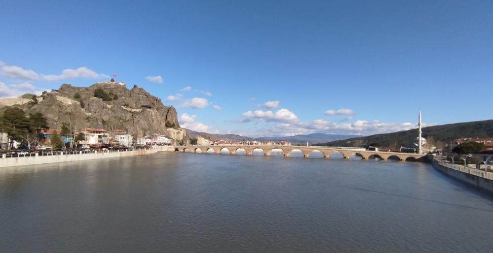 Nehir yatağının su ile dolması Osmancık ilçesinin simgelerinden olan tarihi köprüyle birlikte ayrı bir güzelliğe sahne oldu.