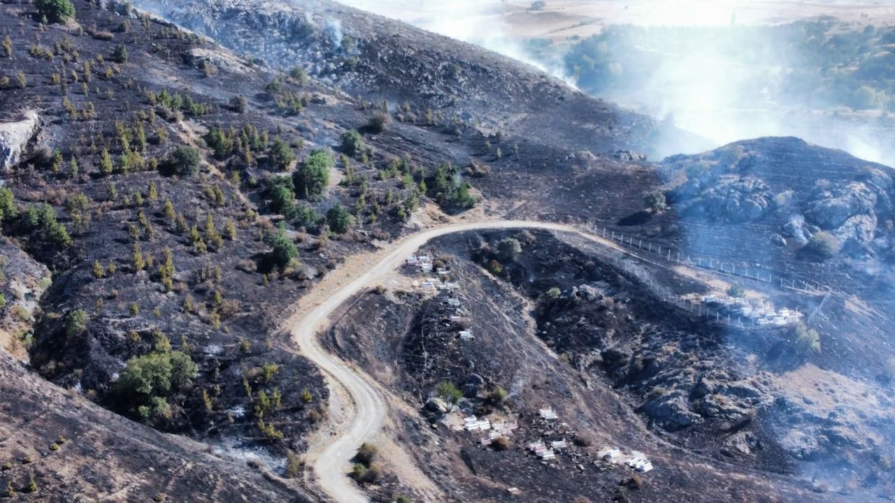 Çorum'un Alaca ilçesinde otluk alanda çıkan ve çevreye yayılan yangında köy mezarlığı ile yaklaşık 1000 dekar ağaçlık alan zarar gördü.