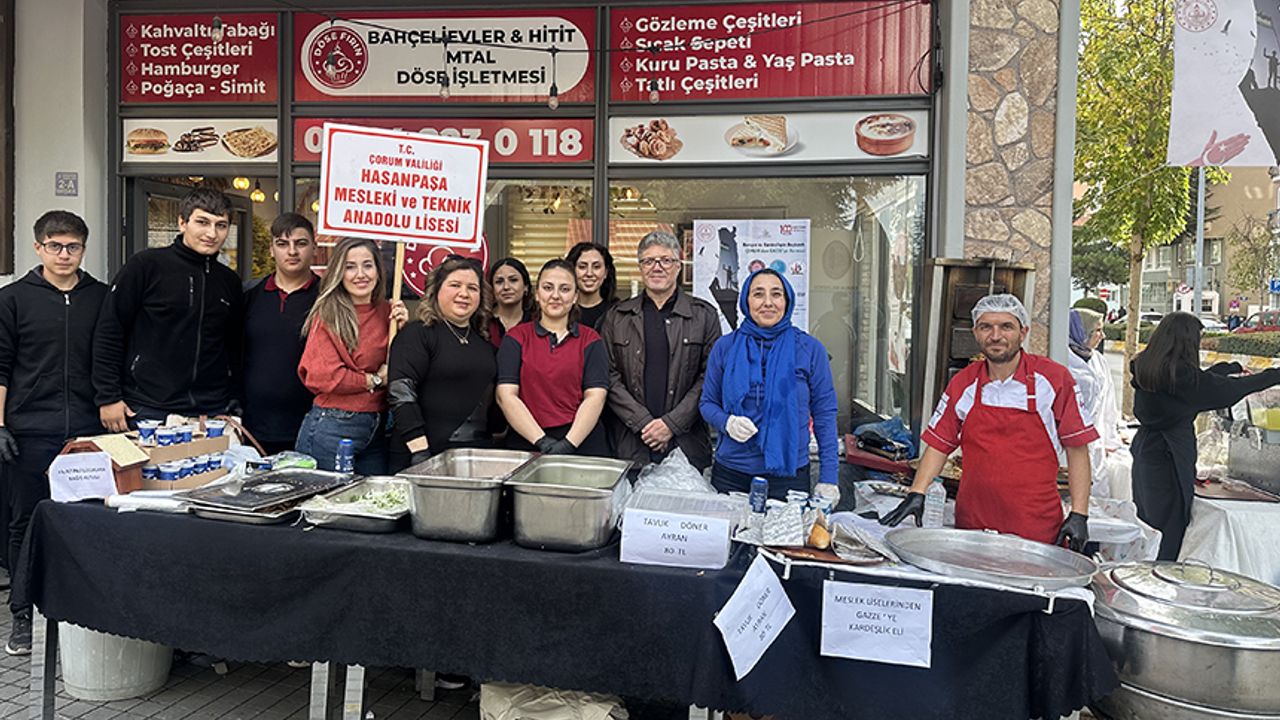 Çorum'da üç meslek lisesince Gazze yararına kermes düzenlendi.