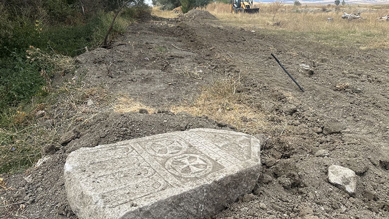 Çorum'un Alaca ilçesinde kepçe operatörünün kanal çalışması yaparken bulduğu, üzerinde haç ve yazıların bulunduğu, tarihi değeri olduğu düşünülen mezar taşı koruma altına alındı.