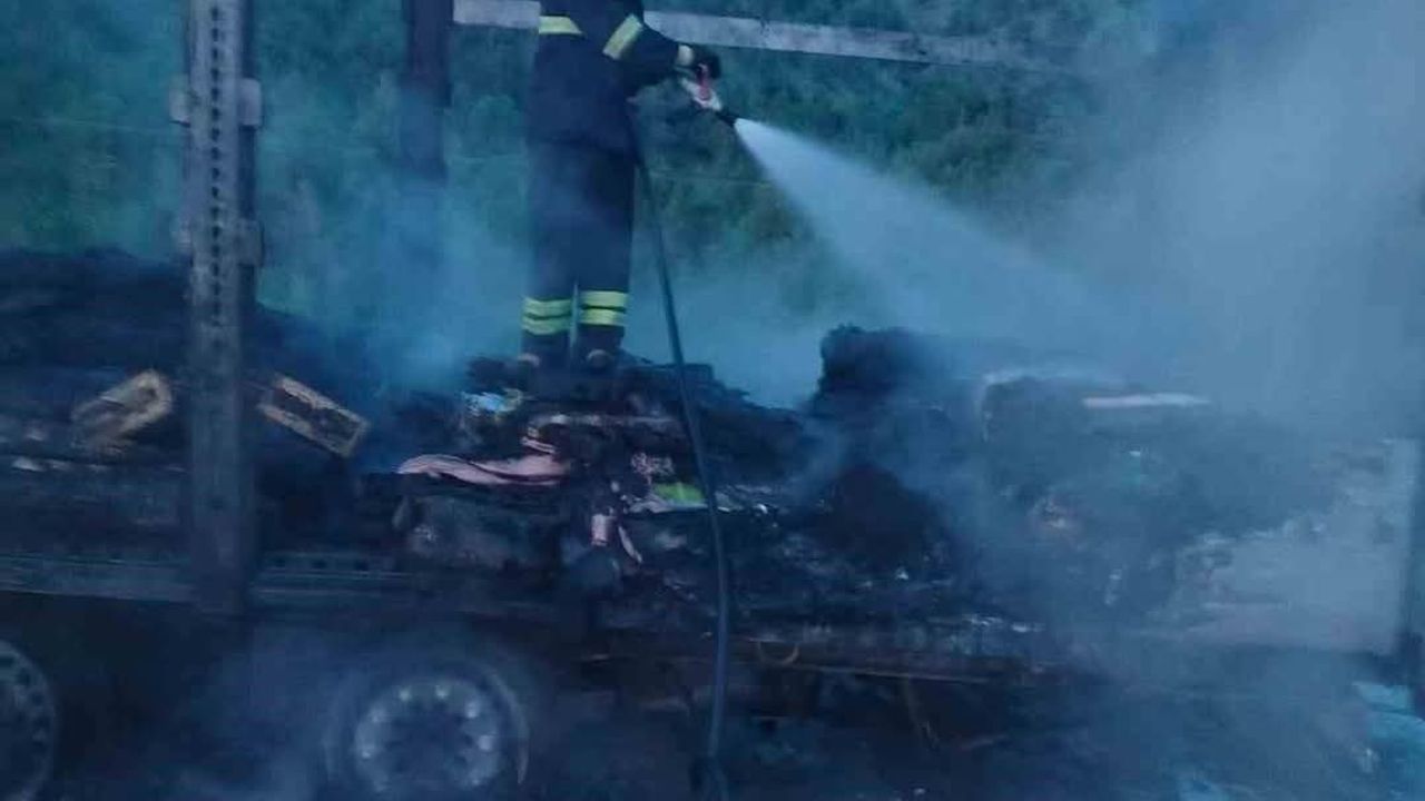 Edinilen bilgilere göre, Servan Ö. yönetimindeki 76 DG 167 plakalı tırın dorsesinde henüz bilinmeyen bir sebeple yangın çıktı.