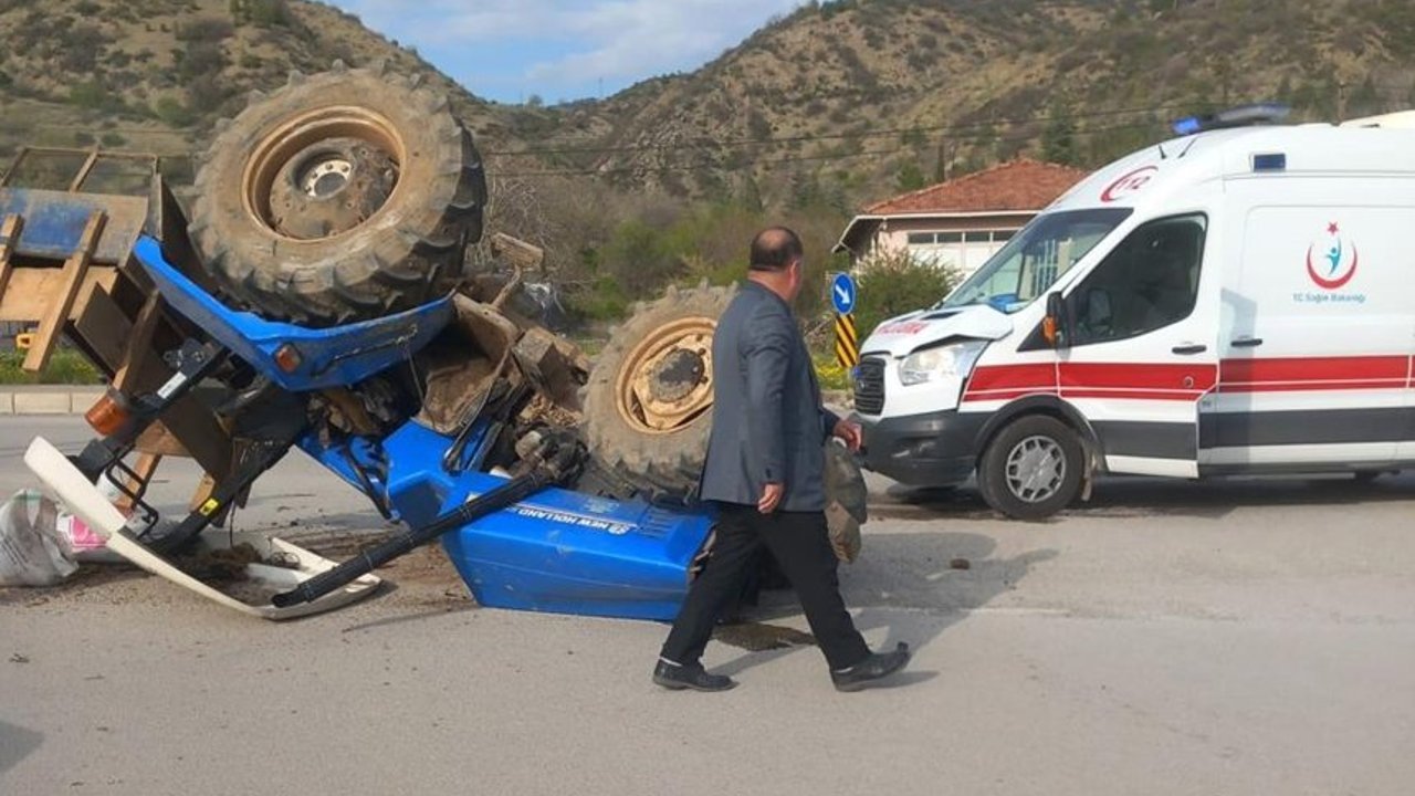 Çorum'un İskilip ilçesinde ambulans ile çarpışan traktördeki 1 kişi yaralandı.