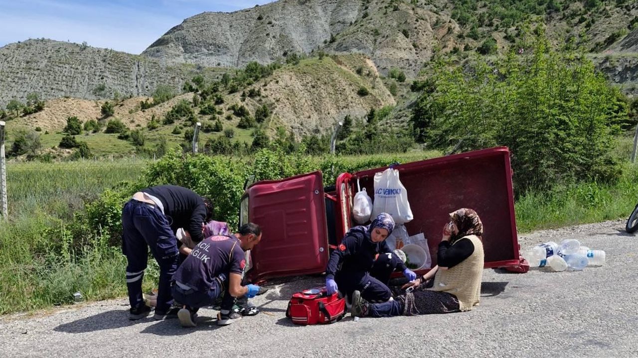 Fatma B'nin kullandığı 19 ADH 590 plakalı triportör, Dodurga-Osmancık kara yolu Kırklar mevkisinde devrildi.