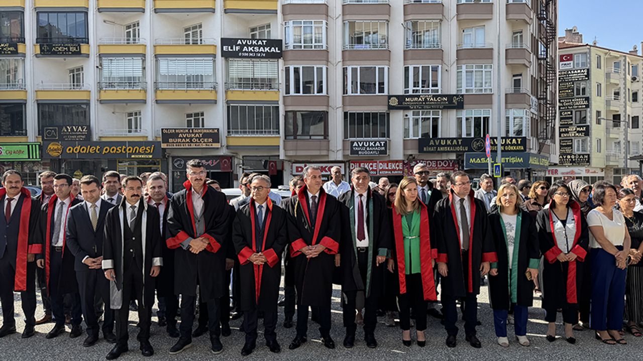 Adliye binası önünde gerçekleştirilen tören saygı duruşu ve İstiklal Marşı’nın okunmasıyla başladı.