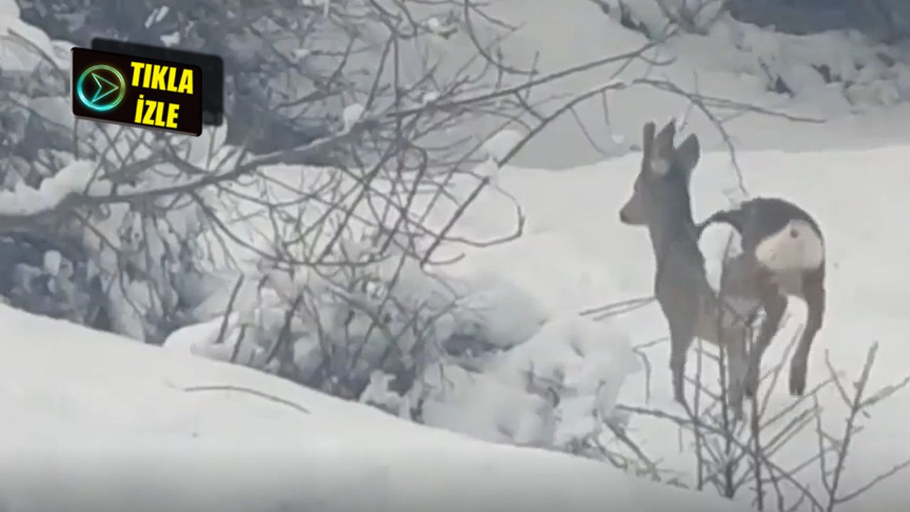 Beyaz örtüyle kaplanan bölgede yabani hayvanlar yiyecek bulmak için ormanlık alana yayıldı.