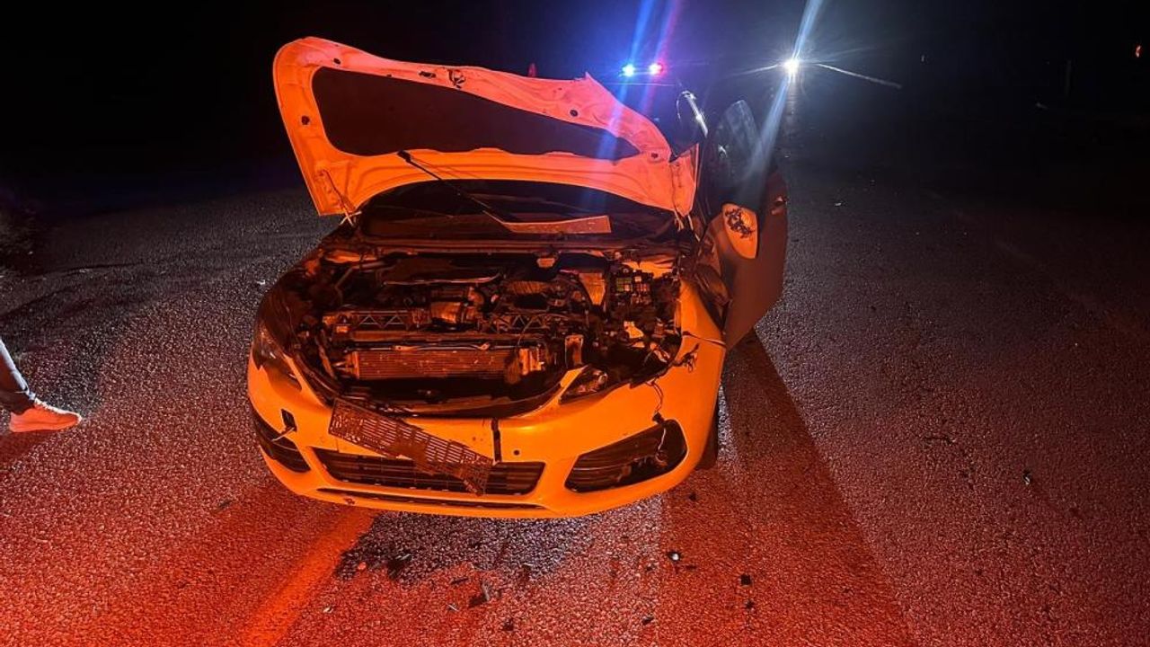 Çorum'un Alaca ilçesinde yola çıkan danaya çarpan otomobildeki 2 kişi yaralandı.