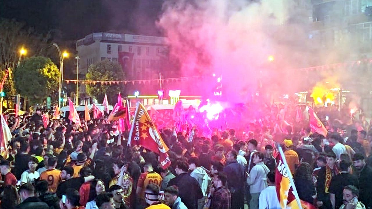 Pazar akşamı sahasında Kayserispor’u 3-0 yenerek bitime iki hafta kala şampiyonluğu garantileyen Galatasaray taraftarları maçın bitiş düdüğü ile birlikte tüm yurtta olduğu gibi Çorum’da da kutlamak için sokağa çıktılar.