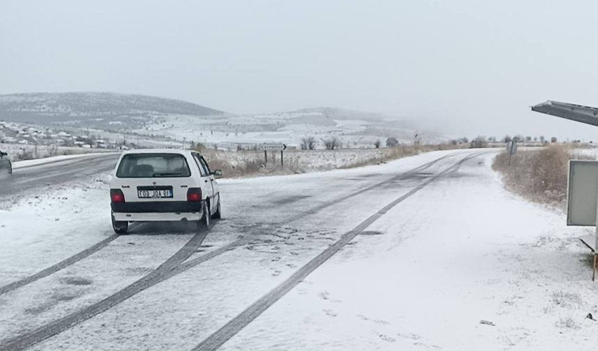 Çorum’un Ortaköy ilçesine bugün kar yağdı.