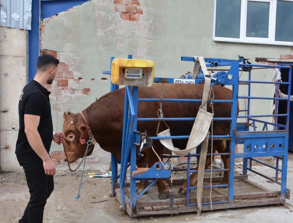 Alaca ilçesinde hayvancılıkla uğraşan Alper Çağlar ve oğlu Süleyman Çağlar'ın yaklaşık 1 yıldır özenle beslediği "Fırtına" isimli dana da bin 140 kilogram ağırlığa ulaştı.
