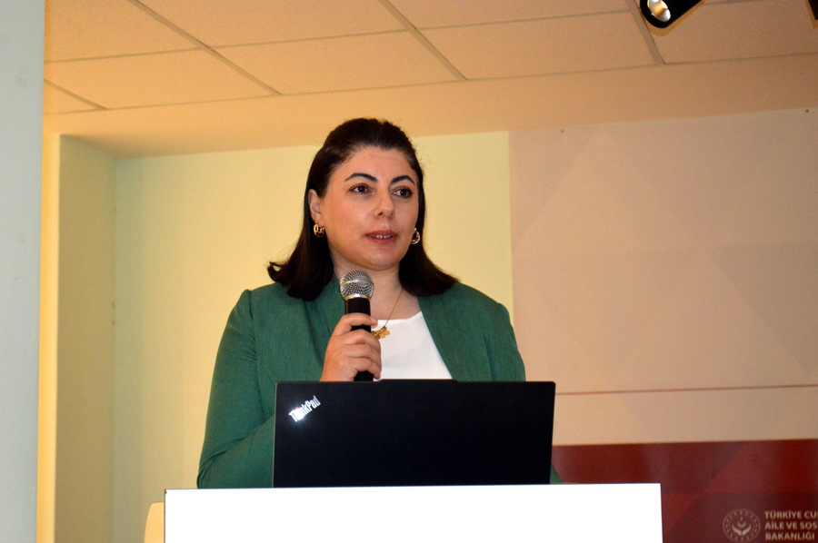 Açılış konuşmalarının ardından Aile ve Sosyal Politikalar İl Müdürlüğünde görevli Sosyolog Sena Şaziye Gökdoğan, “Mevcut Durum Analizi ve Bilgilendirme’ sunumu yaptı.