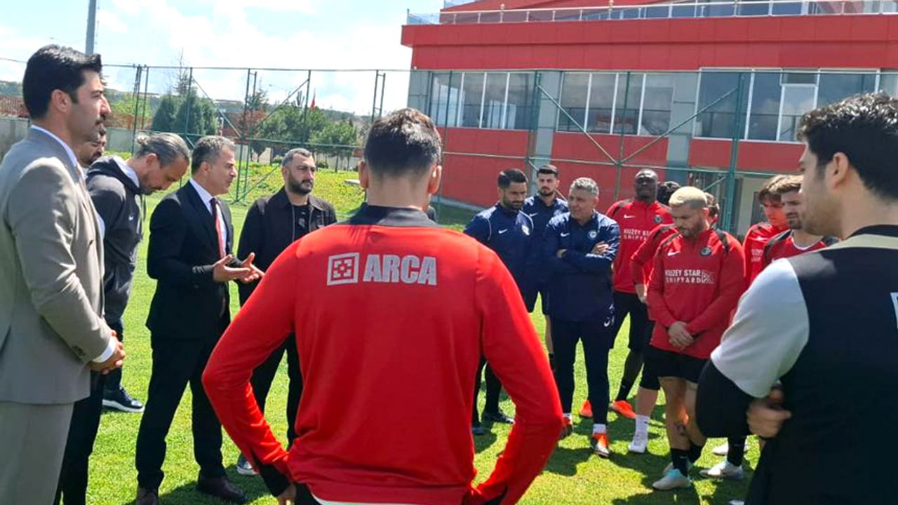 Demirkıran konuşmanın ardından Başkan Oğuzhan Yalçın ve Teknik Direktör Tuncay Şanlı ile çalışmalar hakkında bilgiler aldı ve ligin kalan maçlarında başarılar diledi.
