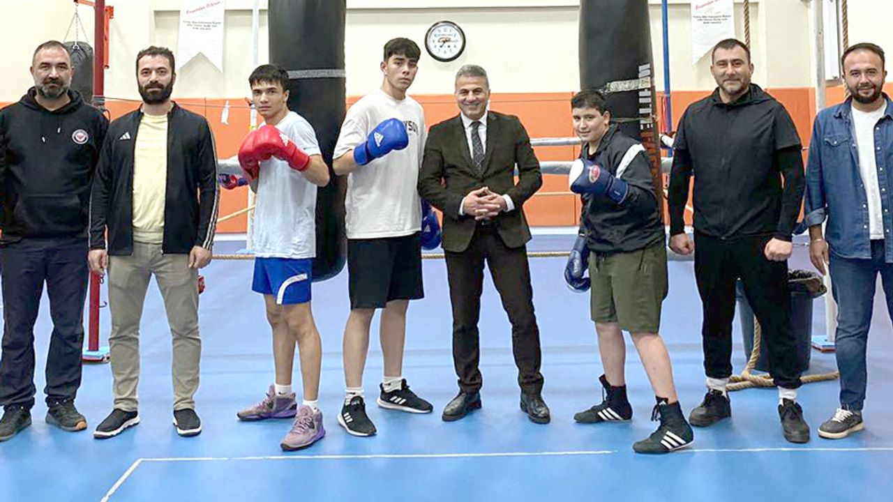Gençlik ve Spor İl Müdürü Cemil Çağlar boks antrenmanı yapan sporcu ve antrenörlerini ziyaret etti.