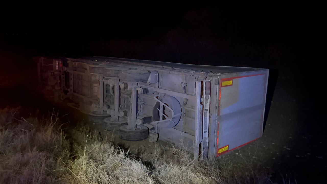 M.A. idaresindeki 06 DLC 327 plakalı tır, Sungurlu-Alaca kara yolu Gökçam köyü yakınlarında devrildi.