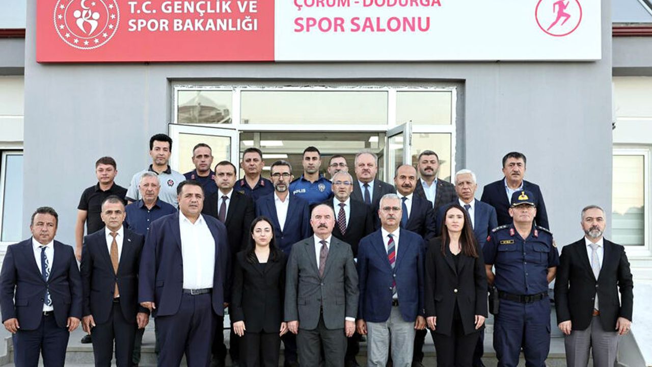 Çorum protokolü Dodurga ilçe ziyaretinde ilçe spor salonu ve futbol sahasında incelemelerde bulundular.