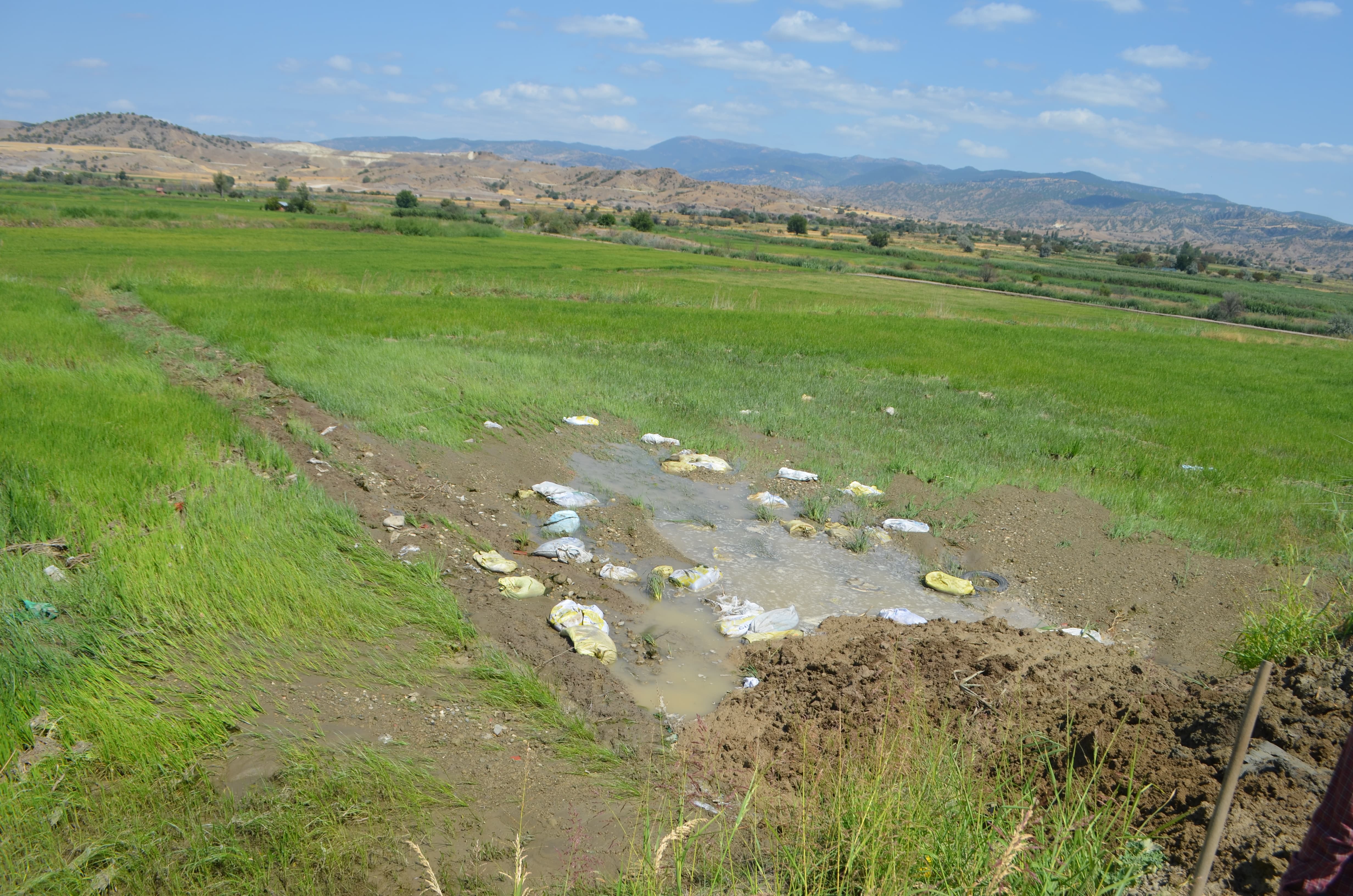 İlçede çeltik tarlalarına su taşıyan kanalın Çatar mevkisindeki bir bölümünün yıkılması sonucu Hasan Gökmen'e ait çeltik tarlasının yaklaşık 200 metrekarelik bölümünde ekili alan zarar gördü.