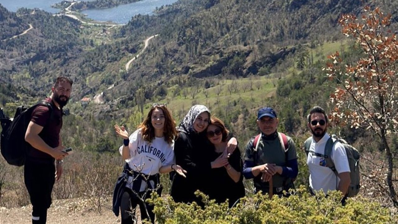 İlkbaharın renklerine bürünen ormanlık alanda yürüyen katılımcılar, Obruk Baraj Gölü manzarasında hatıra fotoğrafı çektirdi.
