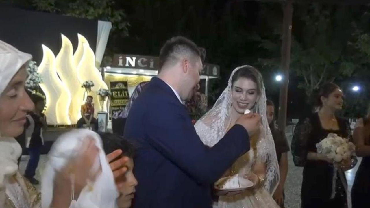 Düğüne katılanlar halay çekip çiftin bu en mutlu gününe ortak oldu. Yemeğin verilmediği düğünde dışarıdan gelin ve damada kesmeleri için 10 katlı pasta getirildi. Gelin ve damat, düğünün sonuna doğru pastayı birlikte kesip tadına baktı. Pasta daha sonra ise misafirlere ikram edildi.