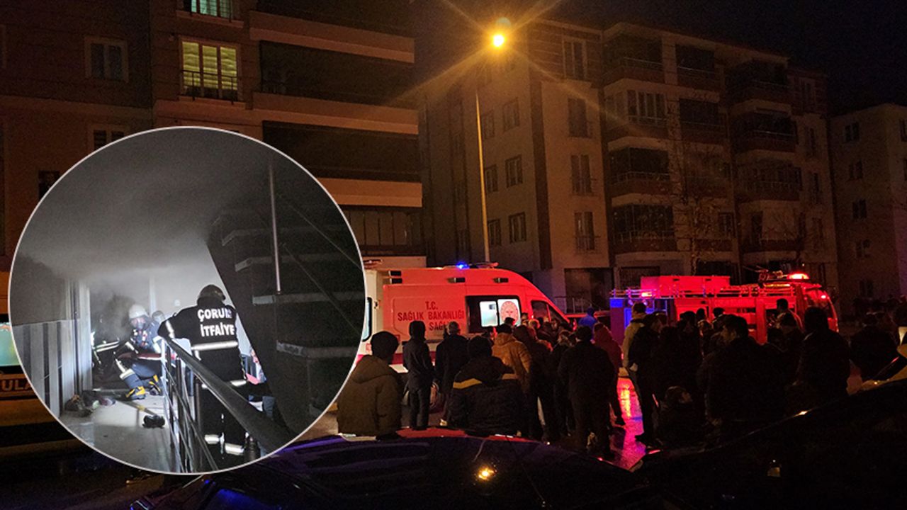 Çorum'da bir apartman dairesinde çıkan yangında dumandan etkilenen 2'si çocuk 4 kişi hastaneye kaldırıldı.