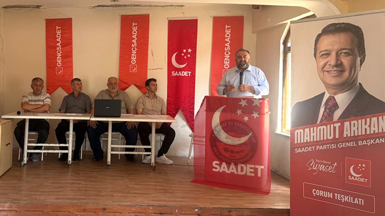 Son olarak kürsüye gelen Saadet Partisi Çorum İl Başkanı Şuayb Sarı ise AK Parti iktidarı ile bu millete açlık, sefalet, fuhuş, hırsızlık, yolsuzluk, haksızlık ve hukuksuzluk dayatıldığına vurgu yaparak, “Öte yandan ülkemizde âdeta bir ‘Çeteler Yüzyılı’ yaşanıyor. Yenidoğan çetesi ile sağlığın, sahte diploma çetesi ile akademinin, sahte avukatlık belgeleri ile hukukun, ne derece yozlaşmış olduğuna şahit oluyoruz. Bu vahim tablo, sistemin ne denli çürüdüğünün açık bir göstergesidir. Tamamen kokuşmuş ve yozlaşmış bu sistem, bu iktidarla düzeltilemez. Bu sahte düzeni değiştirmek için tek çare kalmıştır: O da erken seçim ve Saadet Partisi iktidarıdır.” ifadelerini kullandı.