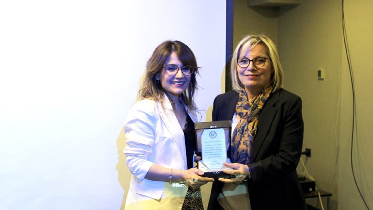Programın sonunda Çorum Eczacı Odası Onursal ve Kurucu Başkanı Ecz. E. Şefkat Güler tarafından Uzm. Dr. Sakine Güzel Esen'e plaket takdim edildi.