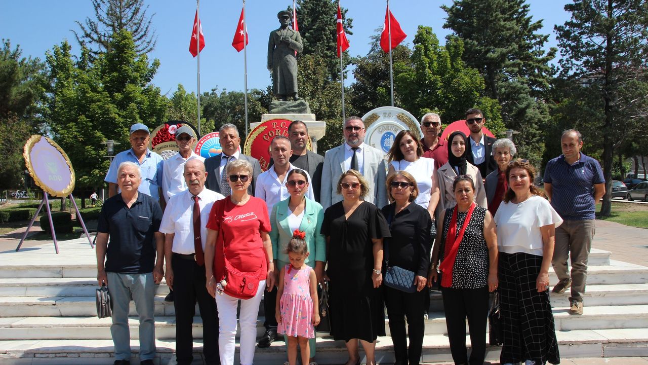 Atatürkçü Düşünce Derneği Şube Başkanı Uğur Demirer, Eğitim-İş Şube Başkanı Tuba Demirel, sendika yönetimi ve ADD Şube Yönetim Kurulu Üyeleri, Birleşik Emekliler Sendikası İl Temsilcisi Sefa Batak ve yönetim kurulu üyeleri, Atatürk Anıtı’nda bir tören düzenleyerek çelenk sundu.