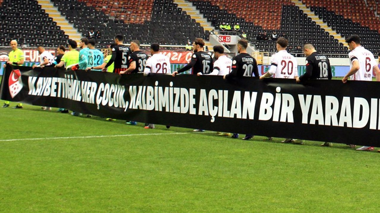 Arca Çorum FK ile Sivasspor arasındaki maçata iki takım ve maçın hakemleri ‘Kaybettiğimizher çocuk kalbimizde açılar bir yaradır. Başımız sağolsun pankartı ile çıktı. İstiklal Marşı öncesinde ölenler için bir dakikalık saygu duruşunda bulunuldu.