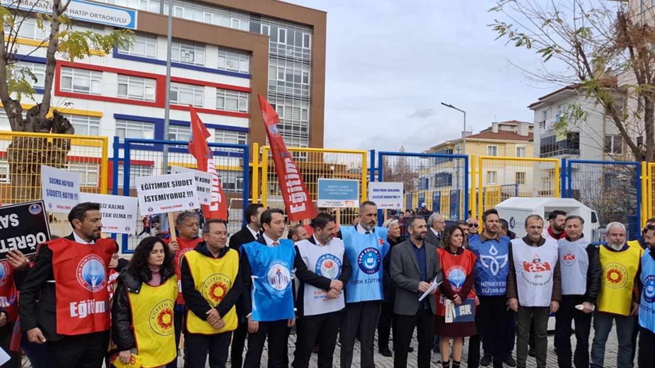 Eğitim sendikaları, bir öğretmenin okulda ders esnasında öğrencilerinin gözü önünde sözlü saldırıya maruz kalmasını protesto ederek konuyla ilgili olarak Necmettin Erbakan İmam Hatip Ortaokulu önünde basın açıklaması yaptılar.