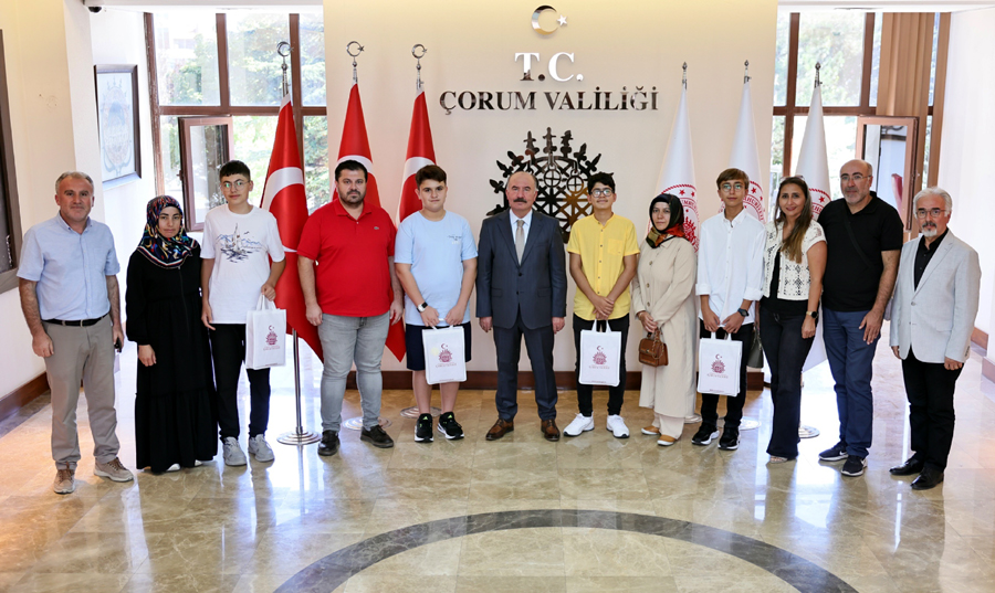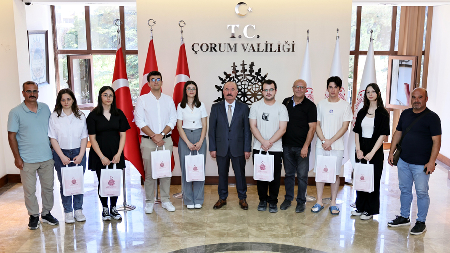 2025 Liselere Geçiş Sistemi (LGS) sınavında Çorum’dan Türkiye birincisi olan öğrenciler ile 2025 Yükseköğretim Kurumları Sınavı (YKS) sonuçlarına göre Çorum’da ilk bine girme başarısı gösteren öğrenciler, Vali Ali Çalgan tarafından makamında kabul edildi.