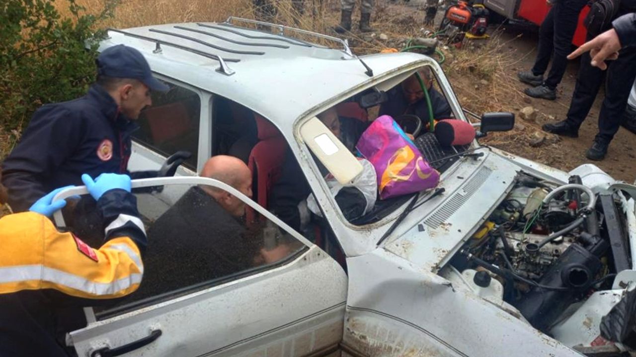İhbar üzerine olay yerine gelen itfaiye ekipleri, yaralıları araçtan çıkardı.