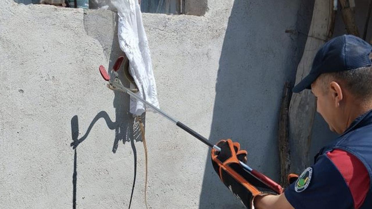Kısa sürede olay yerine gelen itfaiye ekipleri, dikkatli ve titiz bir çalışmayla yılanı evden çıkarttı.