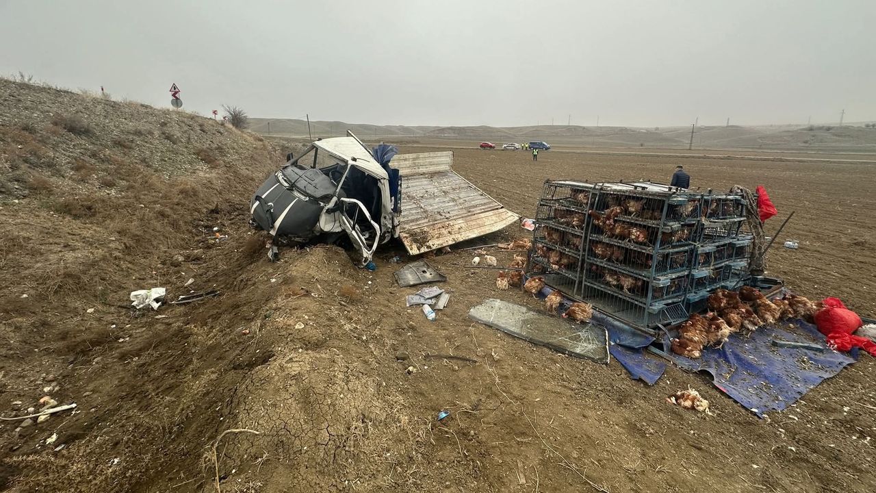Çankırı'da kurulan tavuk pazarına gitmek için Çorum'dan hareket eden tavuk yüklü kamyonet şarampole uçtu.