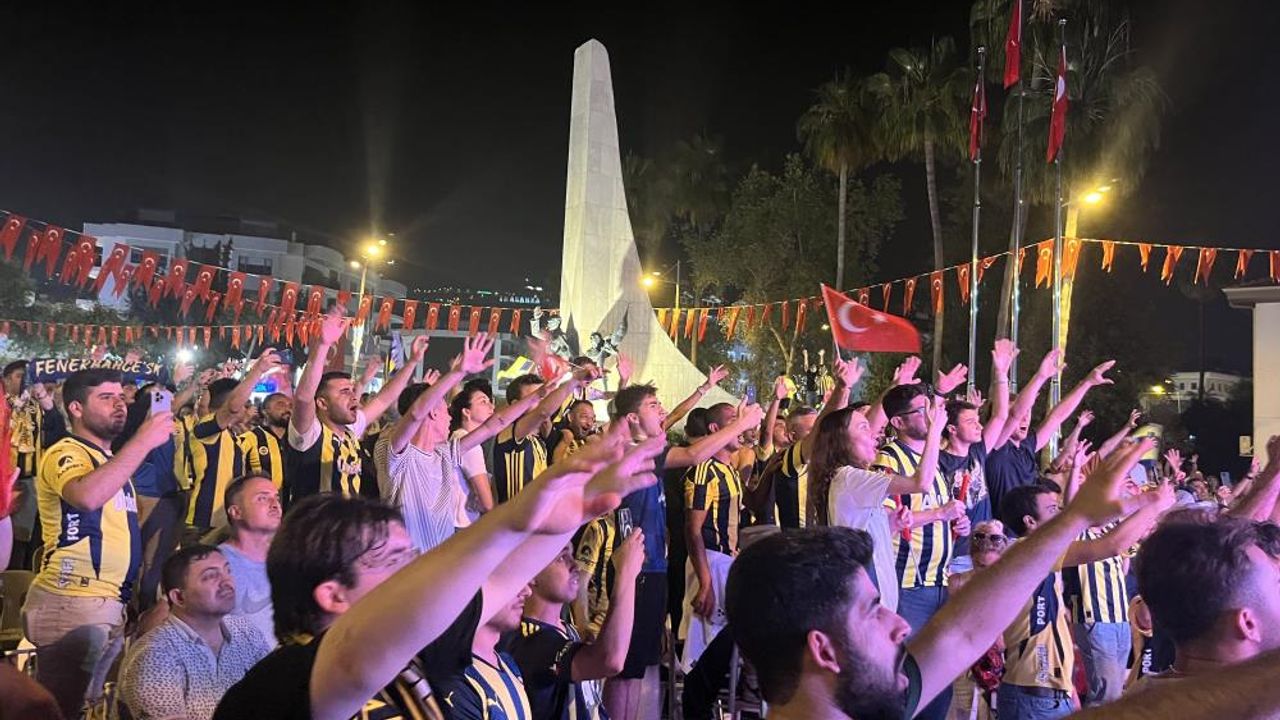 Atatürk Anıtı önünde kurulan dev ekranda maçı izleyen binlerce Fenerbahçeli, tarihi başarıyı meşaleler ve tezahüratlarla kutladı.