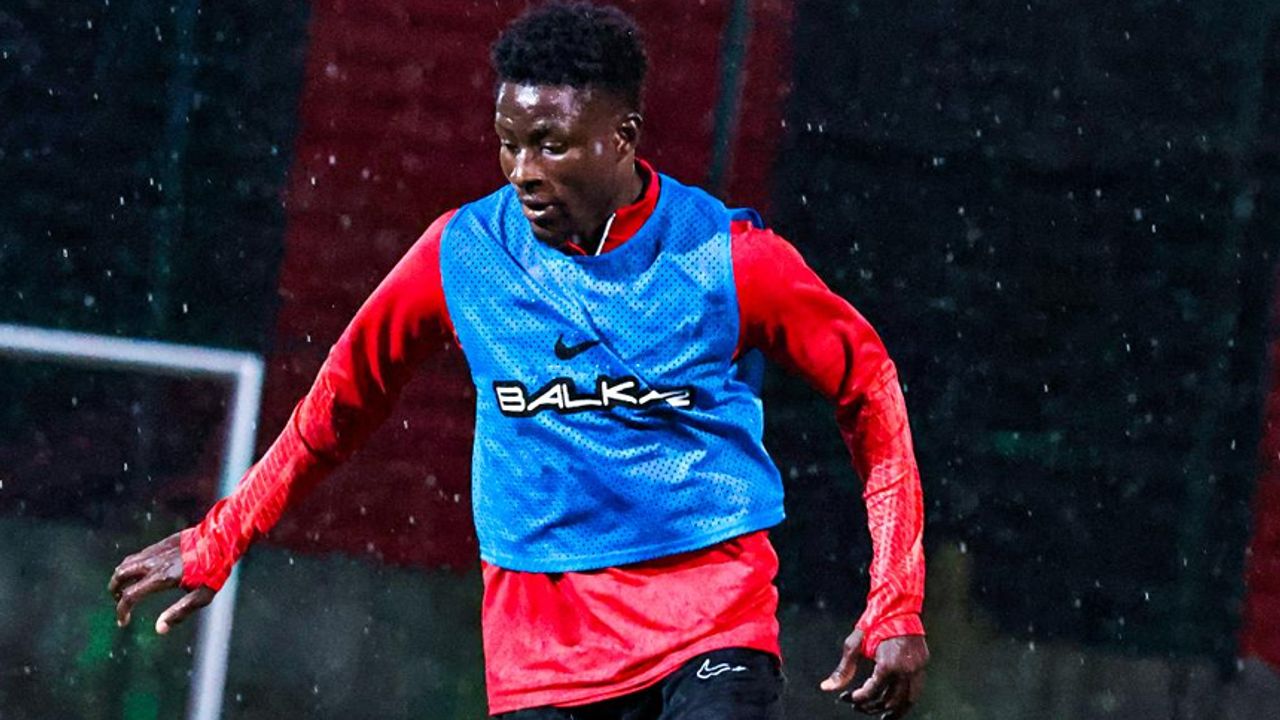 Amed maçına yetişemeyen Ganalı futbolcu dün tesislerde takım arkadaşlarıyla tanışarak ilk antrenmanına çıktı.