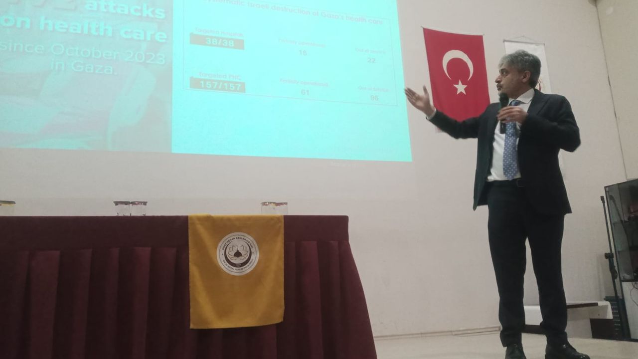 Dokuz lisede öğrencilerden yoğun ilgi gören söyleşide Prof. Dr. Alimoğlu, Gazze’de yaşananları duygu yüklü ve ufuk açıcı bir şekilde aktardı.