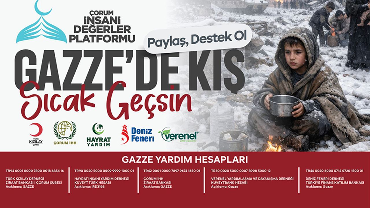 Kampanya süresince nakdi yardımların afişlerde belirtilen banka hesapları aracılığıyla kabul edileceği belirtilirken, Çorum İnsani Değerler Platformu tüm vatandaşları “iyiliğin bir parçası olmaya ve Gazzelilerin duasında yer almaya” davet etti. (Haber Merkezi)