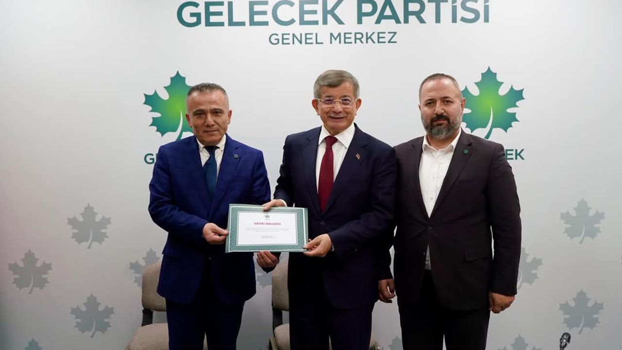 Softa'nın mazbatasını Gelecek Partisi Genel Başkanı Ahmet Davutoğlu verirken, Coşgunsu'ya da hizmetlerinden dolayı teşekkür etti.