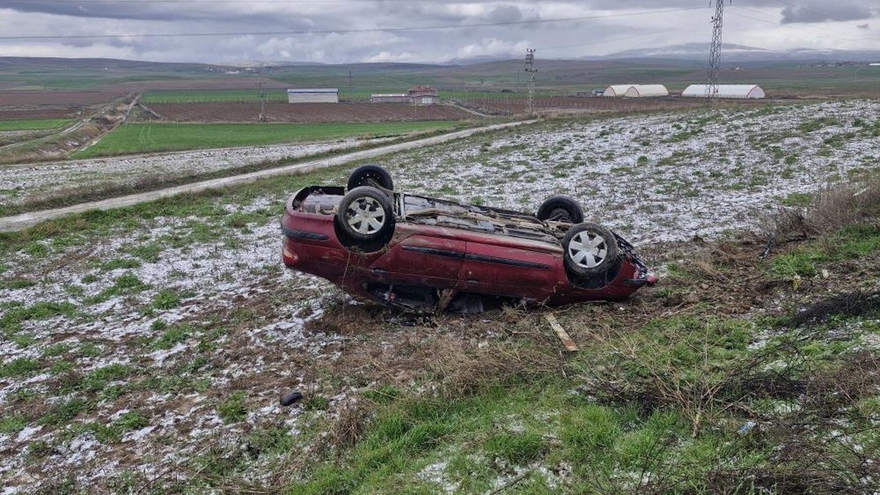 Çorum'un Alaca ilçesinde gizli buzlanma sebebiyle şarampolde yuvarlanan otomobildeki 3 kişi yaralandı.