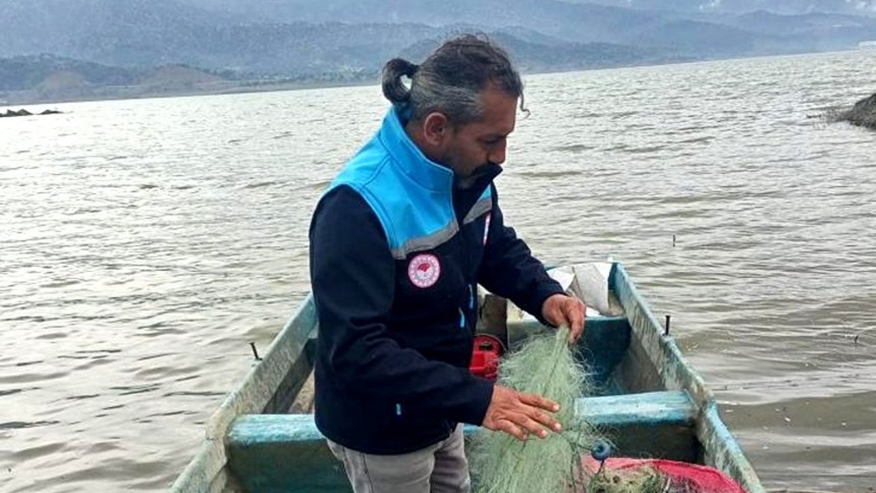 Ekipler tarafından gölde yapılan kontrollerde, gölde yaklaşık 800 metre uzunluğunda kaçak balık ağı olduğu tespit edildi.