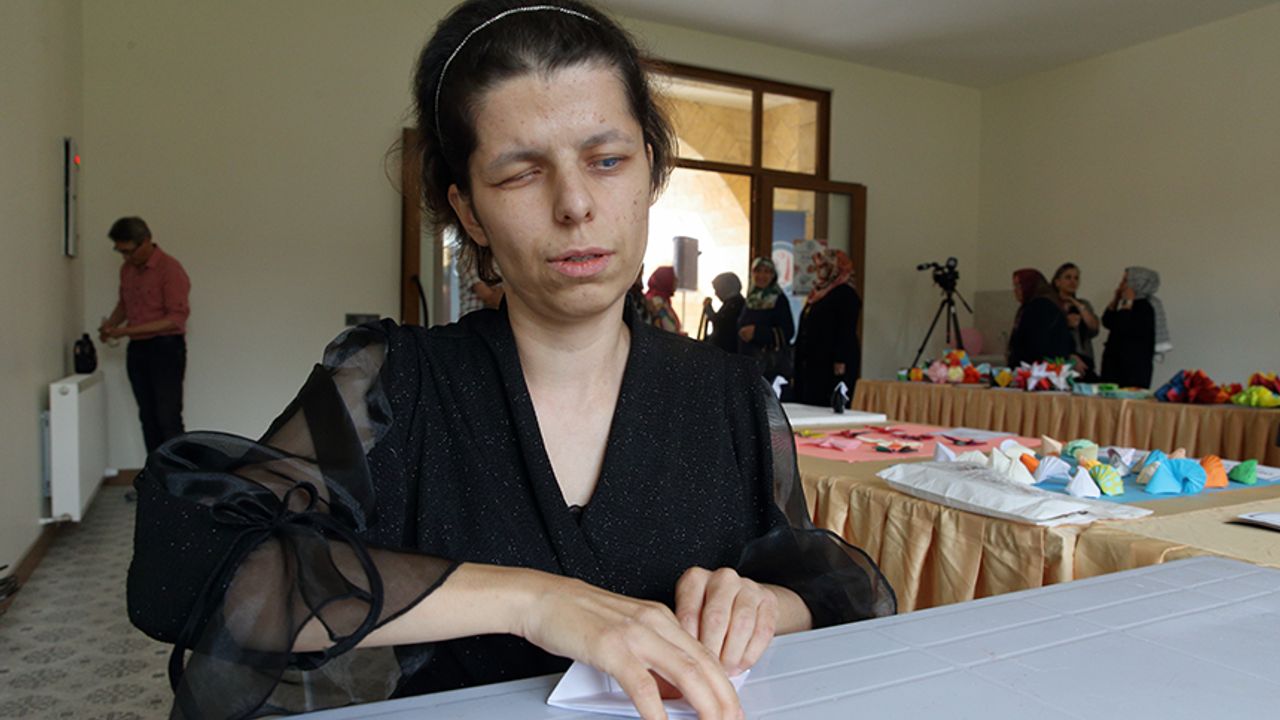 Çorum'da doğuştan görme engelli müzik öğretmeni Bilge Özel, çevrimiçi eğitimle öğrendiği origami sanatında kendisini geliştirip, hiç görmediği hayvan, çiçek ve geometrik şekilleri üç boyutlu hale getirerek ilk sergisini açtı.
