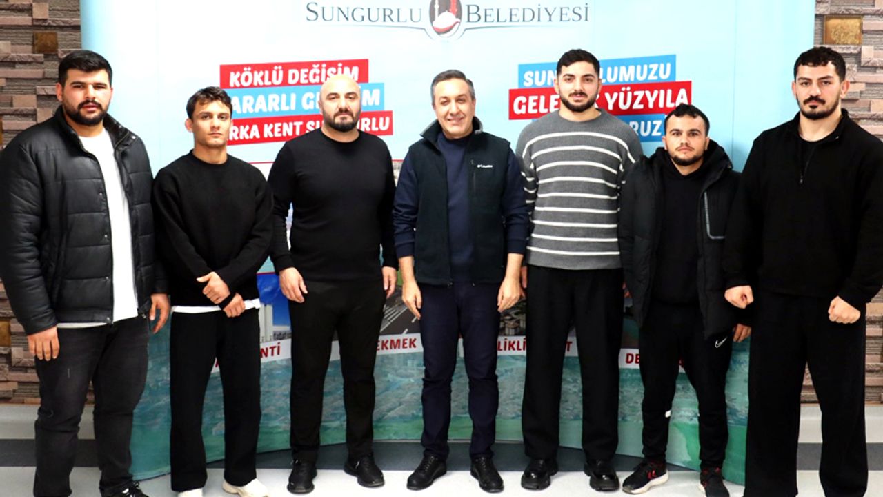 Sungurlu’lu güreş antrenörü Çelebi Bayır ile birlikte Balkan ve Avrupa Şampiyonu-Dünya ikincisi Mert İlbars, Dünya üçüncüsü Tansel Can Örtücü, Avrupa üçüncüsü Samet Yaldıran, Balkan Şampiyonu Himmet Sandıklılı ve Türkiye Şampiyonu Burak Çavuşculu Sungurlu Belediye Başkanı Muhsin Dere’yi ziyaret ettiler.